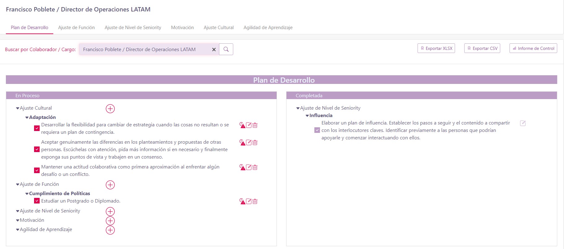 - Propone automáticamente los planes de desarrollo ad-hoc a cada colaborador.