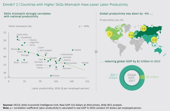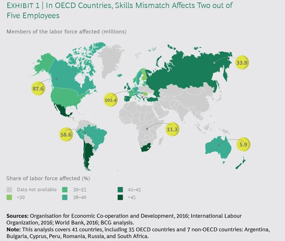 Esto afecta al 40% de la fuerza laboral mundial (1.300 millones de personas). Sumando Brasil, México, Perú, Argentina y Chile el descalce afecta a 82,8 millones de personas.