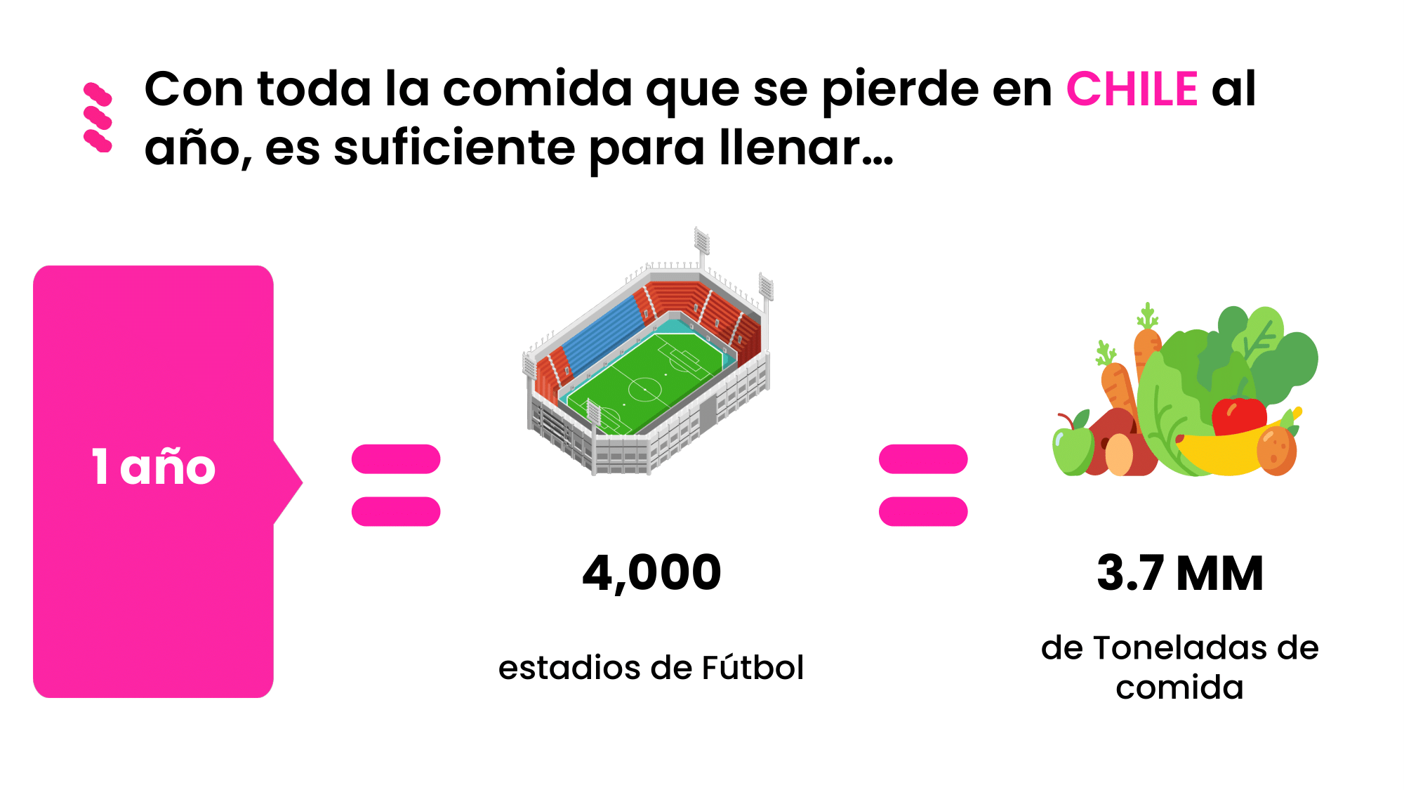 Chile no está ajeno a este problema. Anualmente, se desperdician 3.7 millones de toneladas de comida, ¡suficiente para llenar 4.000 estadios de fútbol!