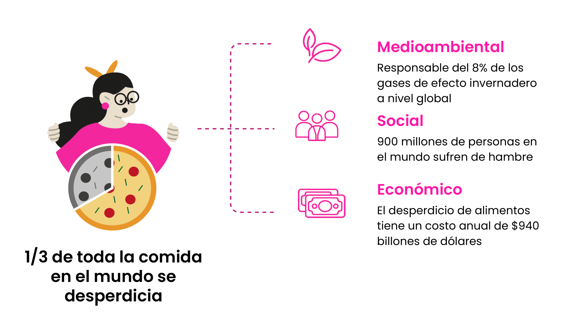 Pero el desperdicio de alimentos no solo tiene consecuencias medioambientales, sino que también tiene consecuencias económicas y sociales. Vivimos en un mundo donde cerca de 900 millones de personas sufren de hambre anualmente y aún así, tiramos comida que según la FAO tiene un costo económico anual de $940 billones de dólares.
