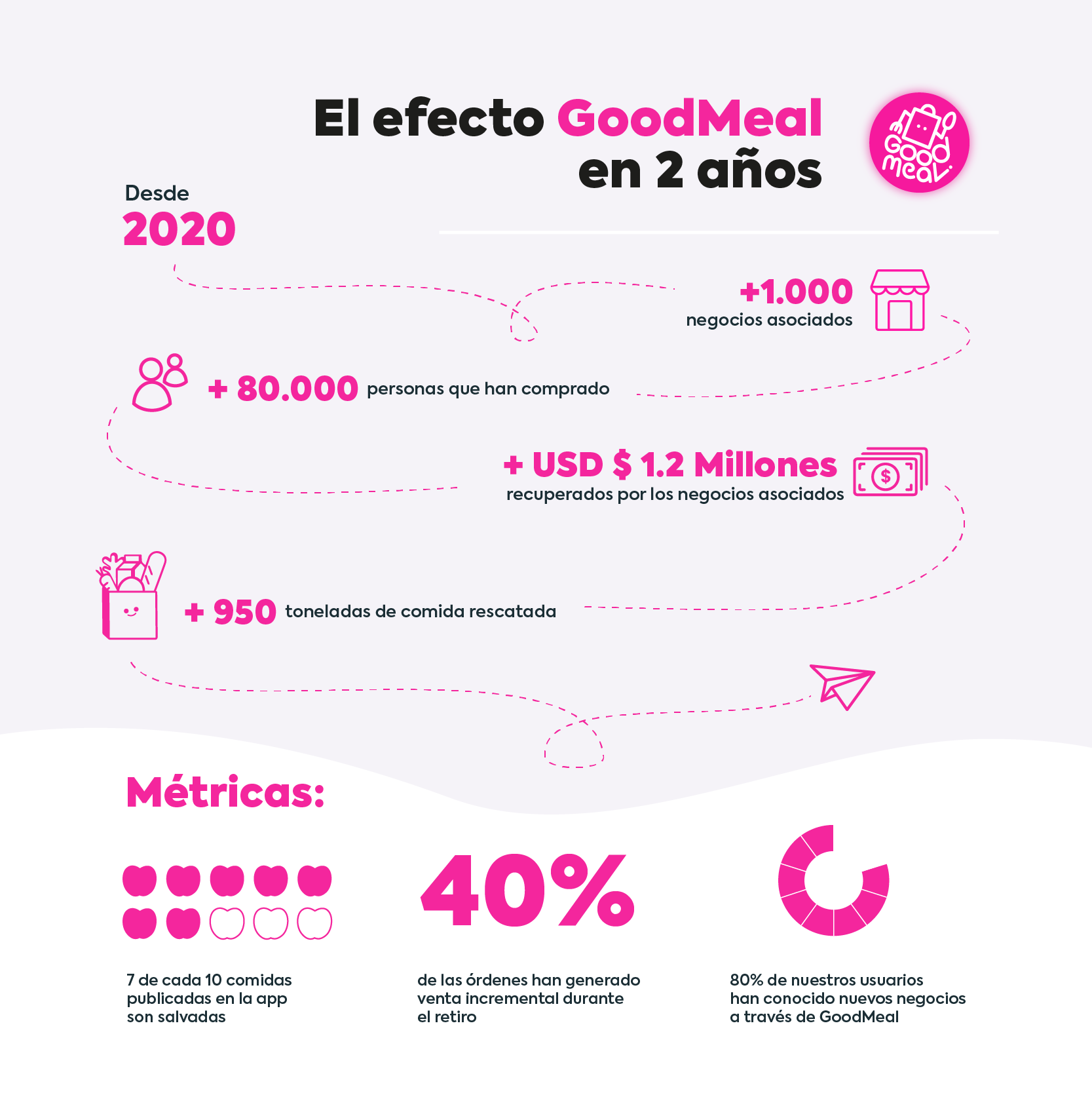 GoodMeal es un marketplace en formato app que conecta negocios de comida que tienen excedentes diarios (productos próximos a vencer, productos que no han sido consumidos a lo largo del día o que presentan imperfecciones estéticas) con decenas de miles de usuarios dispuestos a comprar esta comida con descuentos desde 50%.