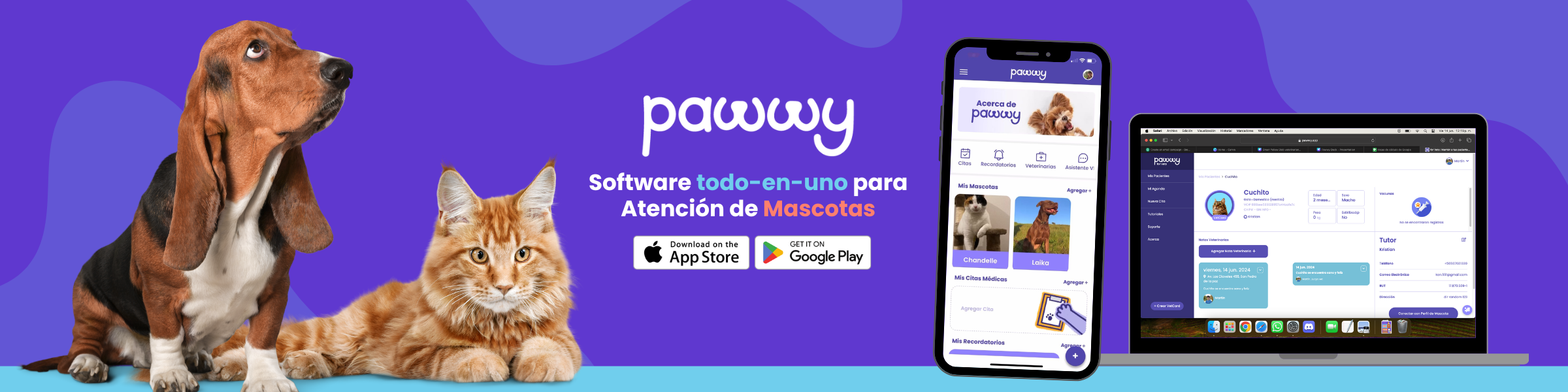 Pawwy es una plataforma SaaS que digitaliza las fichas clínicas, exámenes y recordatorios, solucionando problemas administrativos a veterinarios y permitiendo que a través de su app, los tutores también puedan crear y acceder a la información clínica de sus mascotas.