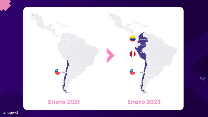 El 2022 fue el año de la internacionalización, pusimos a prueba si el éxito obtenido en Chile era replicable en otros países de la región y en mayo lanzamos en Colombia y Perú. Los resultados fueron aún mejores que los inicialmente obtenidos en Chile, logrando un 30% más de crecimiento que el obtenido inicialmente. Este éxito nos demostró que había mercado internacional para nuestra propuesta y pusimos foco en entrar a dos nuevos países estratégicos el 2023: México y Argentina consolidándonos como la única plataforma latina en los mercados más importantes de la región.